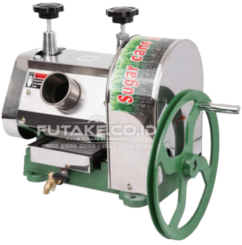 Mesin Giling Tebu | Press Tebu Manual – Tekanan yang dihasilkan pada sitem mekanik alat peras tebu ini sangat ringan. Dengan sistem engkol akan mengeluarkan air tebu dengan maksimal.