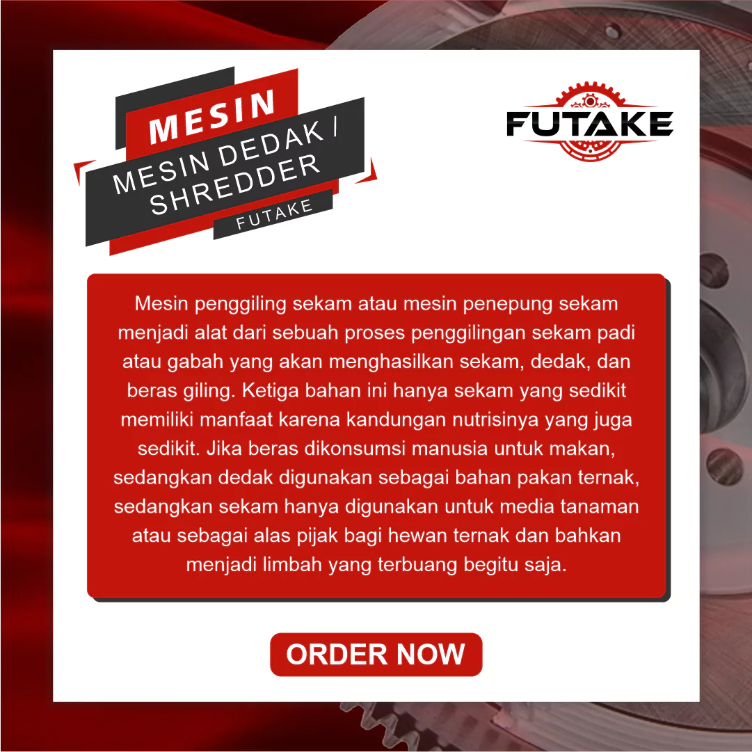 Jadi, jika Anda membutuhkan mesin penggiling sekam jadi dedak terbaik untuk membantu produksi dedak Anda, cobalah mesin dedak terbaru dari Futake Indonesia. Hubungi kami segera untuk mendapatkan harga terbaik dan informasi lebih lanjut pada nomor Telepon / WhatsApp 0813-7799-0055.