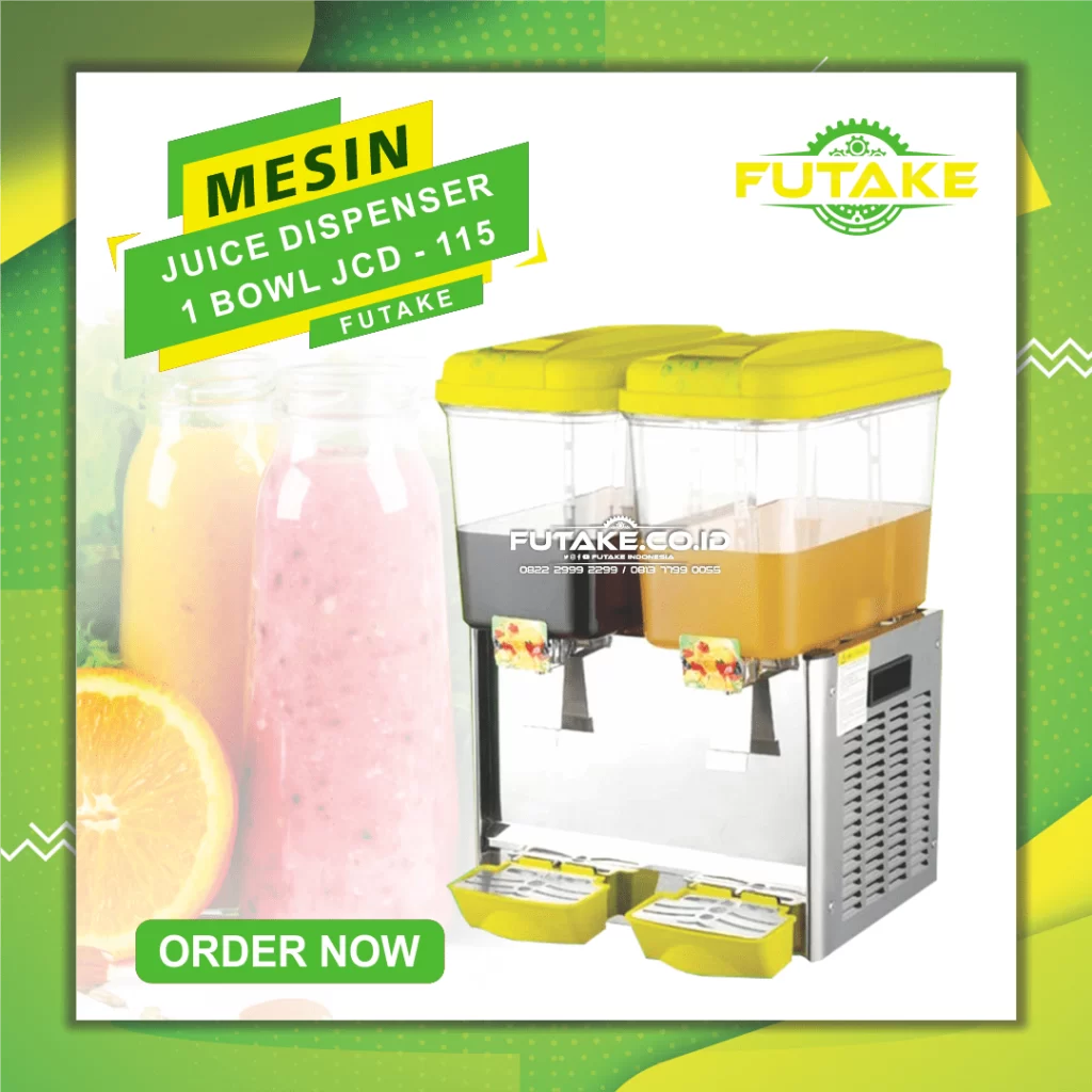 Mesin Juice Dispenser 2 Bowl JCD-115 adalah solusi yang sempurna untuk menyajikan minuman segar dan lezat dalam acara Anda. Dirancang dengan canggih dan praktis, mesin ini akan membuat penyajian minuman menjadi lebih mudah dan menarik.