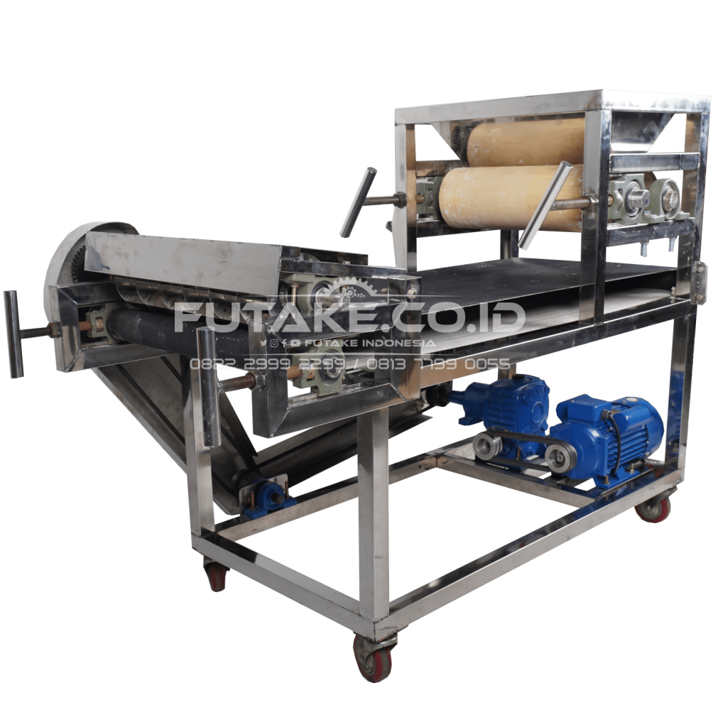 Mesin Press & Cetak Krupuk Conveyor – Mesin Press dan cetak krupuk merupakan mesin yang digunakan untuk produksi krupuk secara massal dengan pengoperasian mesin dilakukan secara otomatis sehingga pekerjaan lebih efektif.